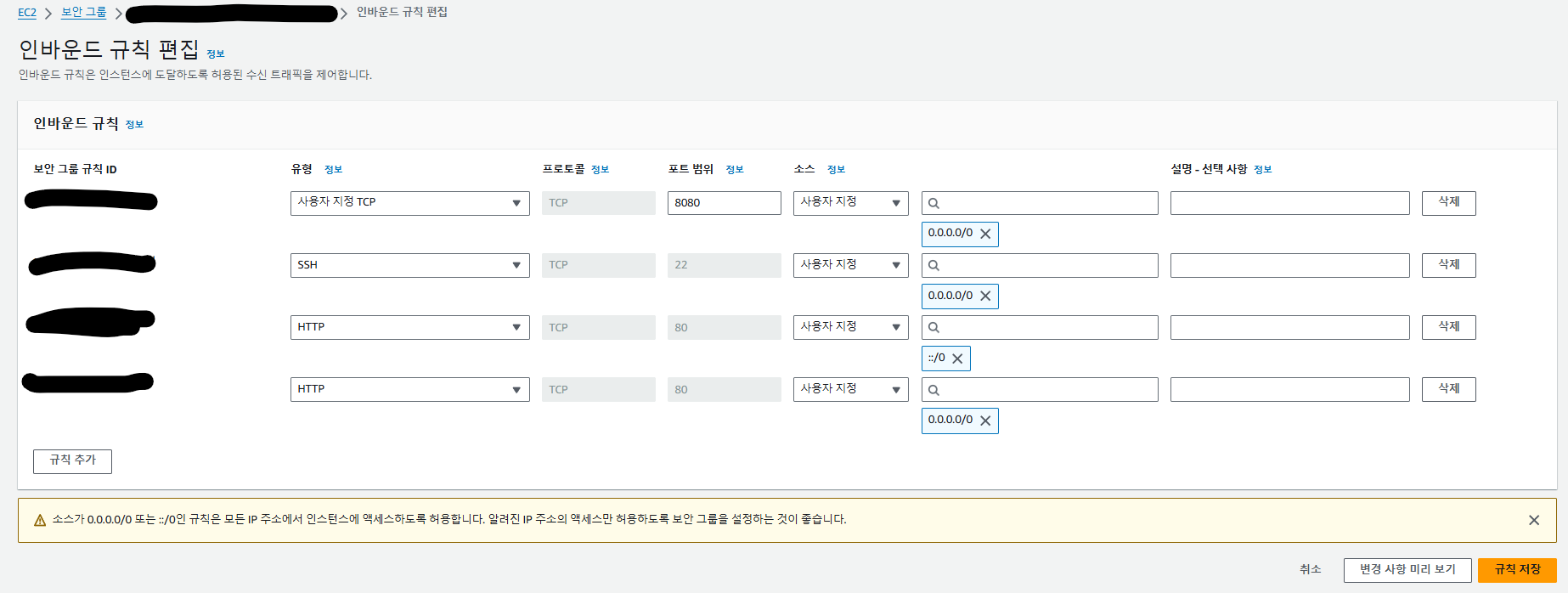 AWS 인바운드 규칙 변경