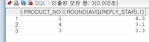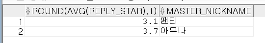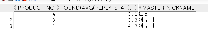 SELECT R.PRODUCT_NO, ROUND(AVG(REPLY_STAR),1), P.MASTER_NICKNAME
