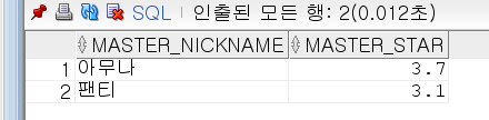SELECT MASTER_NICKNAME,MASTER_STAR