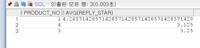 SELECT PRODUCT_NO, AVG(REPLY_STAR)