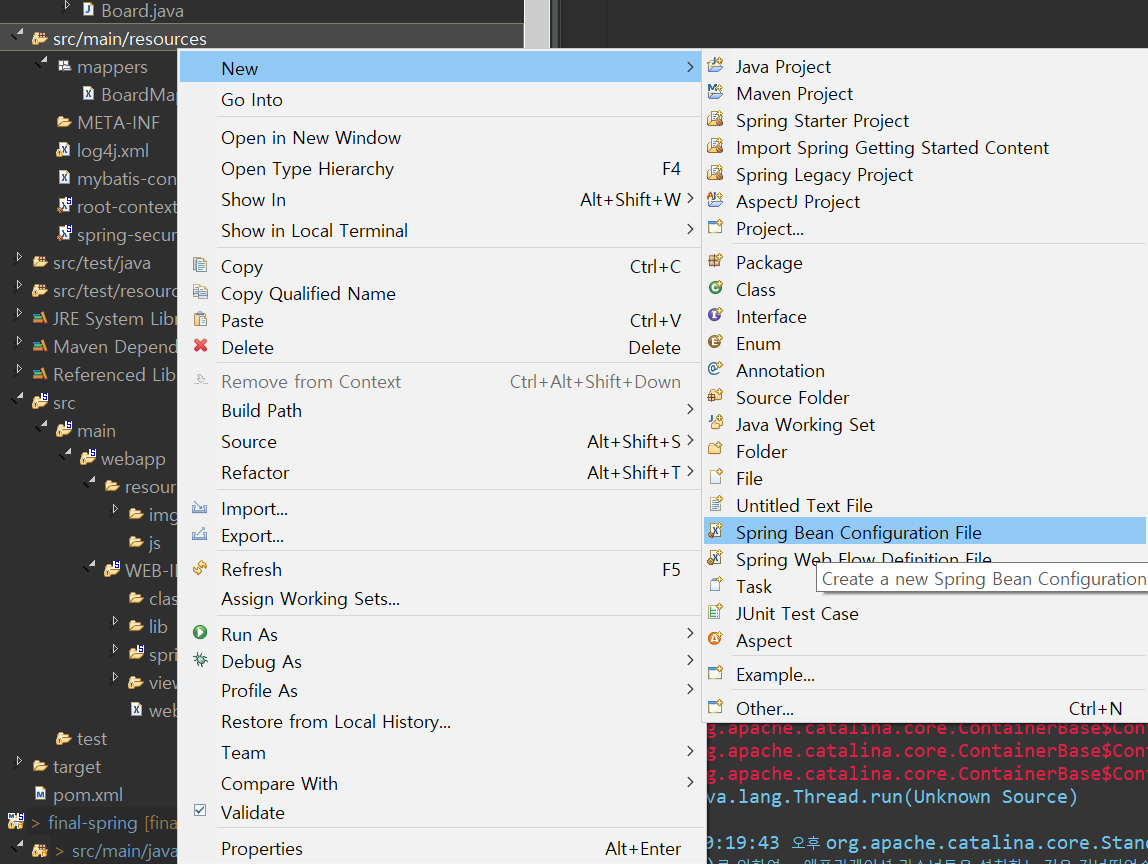 5. src/java/resources 경로에 Spring Bean Configuration File 클릭