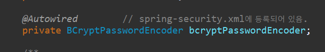 8. BoardController에 @Autowired를 통한 BCryptPasswordEncoder 필드변수 생성