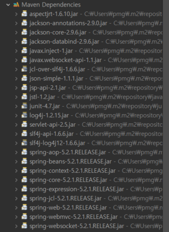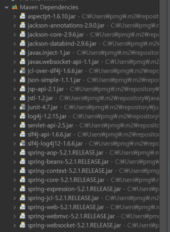 log4j가 정상적으로 다른 jar파일과 같이 불이 잘 들어와있다.