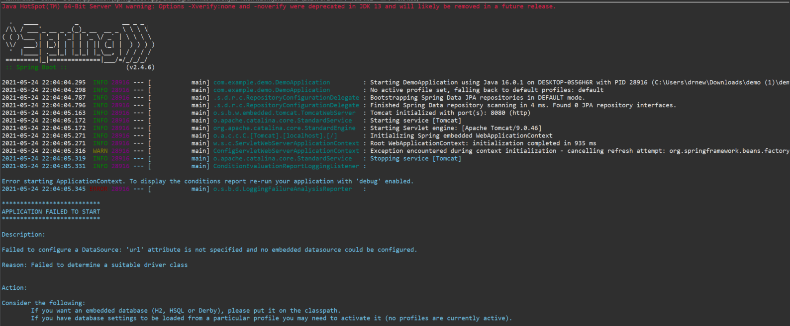Reason: Failed to determine a suitable driver class